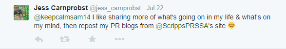 Along with these awesome tweets, Gentry Bennett wrote a short post about her own blogging endeavors. Read it here, https://findingthelining.wordpress.com/2015/07/26/scrippssummerchallenge-2015/