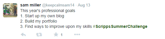 Remember that certification you told us you wanted to start during Week 1? Well your next, and final #ScrippsSummerChallenge is to tell us what you learned from that course! We can’t wait to hear the different things you all learned. KEEP TWEETING!