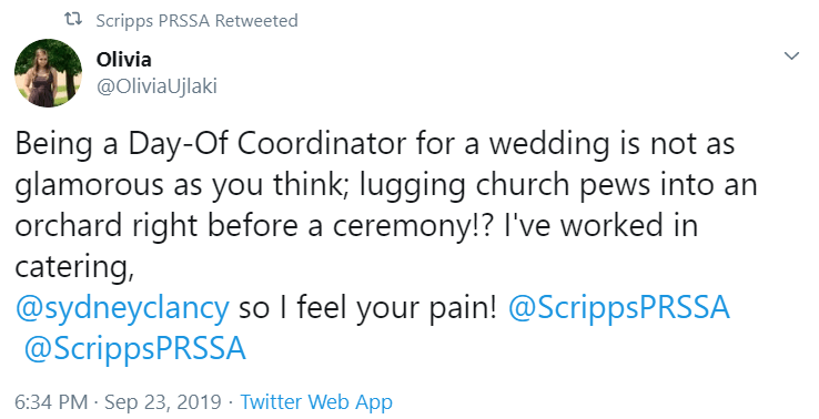 Sydney Davis is a senior studying strategic communication and the current VP of Public Relations for Scripps PRSSA. Follow her on Twitter @_sydneyadavis.