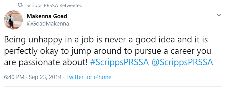Scripps PRSSA was more than pleased to welcome Sydney Clancy from Hometeam to speak to the Chapter.